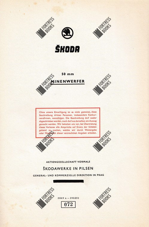 VERY RARE, ORIGINAL Skoda publication - published around 1940 - on their 50 mm Mine Thrower.