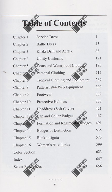 The book -658 pages!- describes the uniforms and insignia produced and worn in the UK and the Commonwealth during World War 2. Illustrated with well over 1700 photos! MAJOR reference!