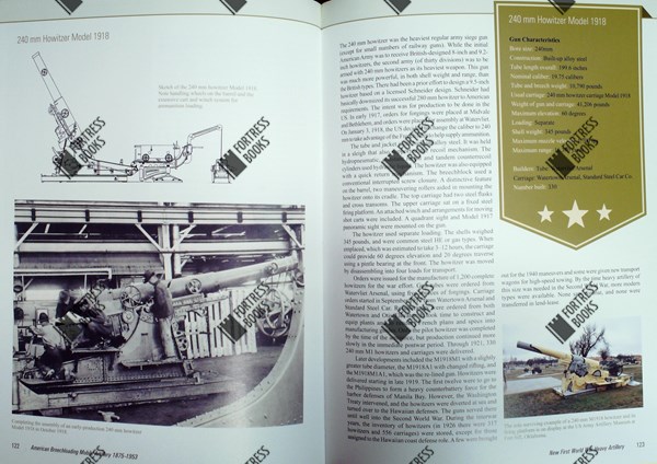 Rijk geillustreerd boek over de geschiedenis en ontwikkeling van Amerikaans mobiele achterlader-artillerie, met een catalogus van de verschillende typen kanonnen.