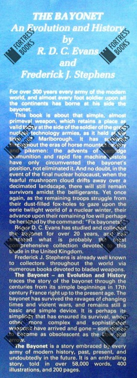Het boek beschrijft de geschiedenis en ontwikkeling van de bajonet wereldwijd, geillustreerd met meer dan 400 foto's en tekeningen.